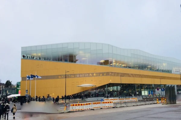 Oi kaunis Oodi / on sulla aikamoinen moodi / ja kattos korkealla. / Ja siellä katon alla / asustaa kulttuuri – kaikenmoinen. / Ol’ kyllä onni suuri, / että sulle löytyi tila sopivainen juuri / no siinä Sanoman ja Musatalon siimeksessä / sä loikoilet, jos missä / niin siellä virtaa energia sanoin, sävelin sun luo – ja takaisin. / Taas kirjafriikit kahvikupposensa juo / katsellen eduskuntaa, miettein somin / ja käsin ikiomin / he kaivaa hyllyköistä parhaat niteet. / Ja sillai säilyy kieleen vahvat siteet, / ne jotka meistä sivistyneen kansan teki. / Niin luokses tullaan juoksujalkaa meki / ja huolehditaan seki, / ett’ kieli suomen köyhtymään ei koskaan pääse!