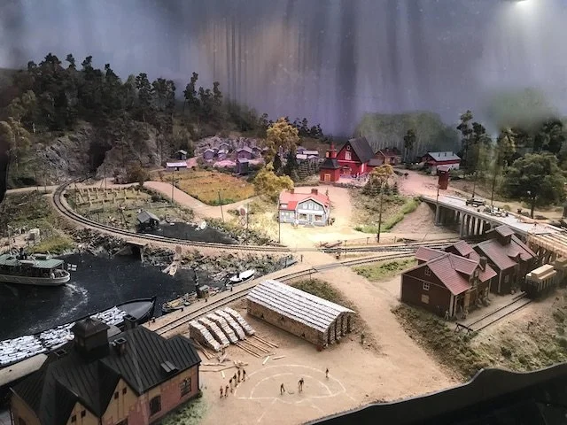 Pienoisrautatiekerho ry:n rakentama Löylymäki, kuvitteellinen paikkakunta 1950-luvun loppupuolella Etelä-Savossa, kuvat: Kirjatimpuri